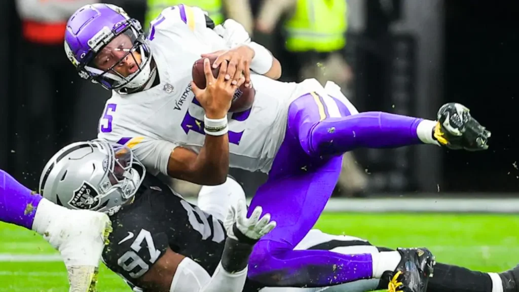 Las Vegas played strong, disciplined defense throughout the game. They limited deep passes, pressured both Vikings quarterbacks, and held the Vikings to just a single scoring drive. Maxx Crosby was a force on the edge, contributing pressures that disrupted timing and kept the Vikings’ scoring opportunities limited.