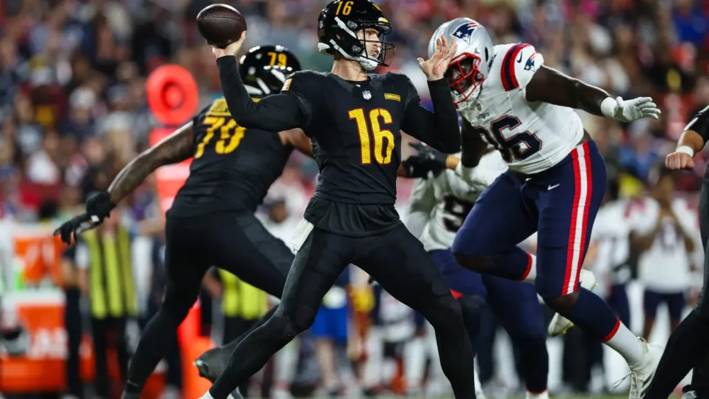 The preseason matchup opened with a bang when New England’s TreVeyon Henderson returned the opening kickoff 100 yards for a touchdown. Immediately, Washington was on the back foot.